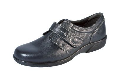 Very comfortable leather shoe with a seam free extra wide toe box to accommodate swollen feet combined with an easy access Velcro strap make this style very popular.